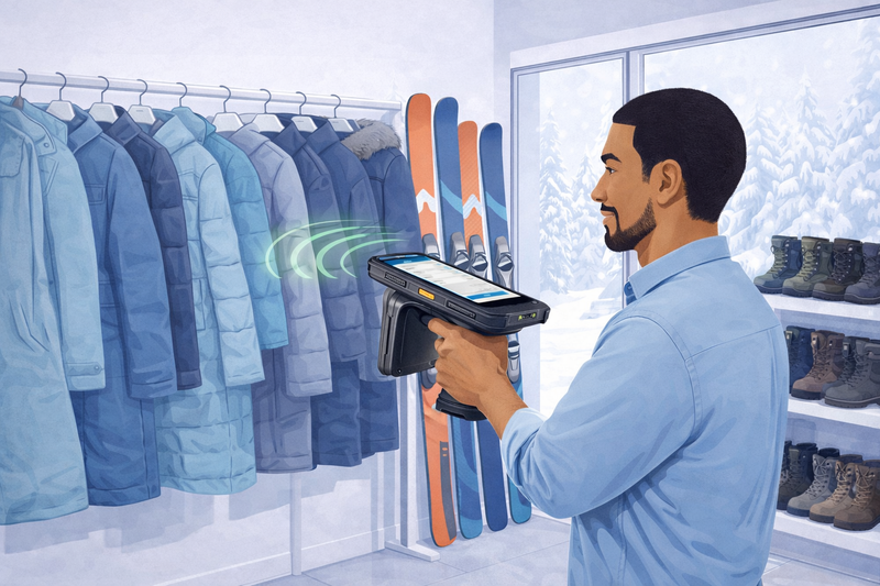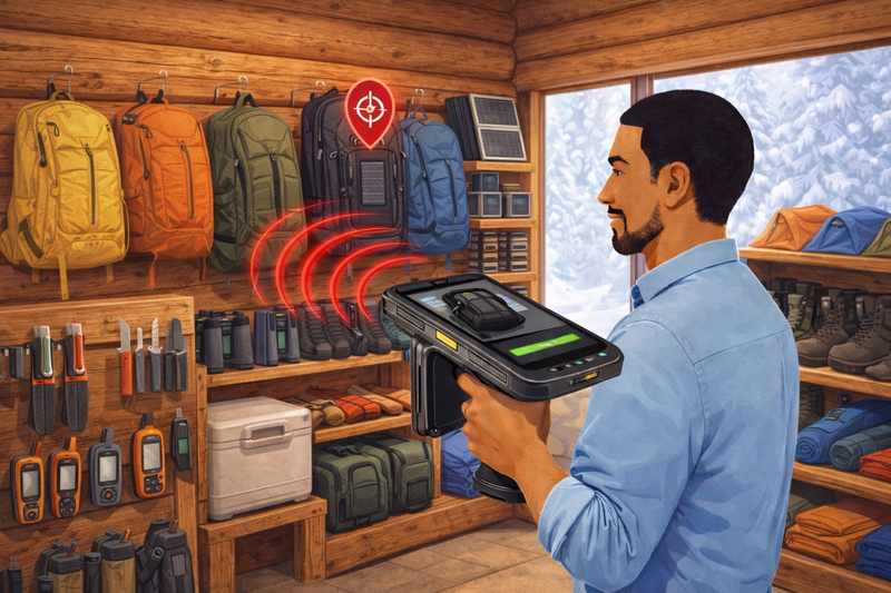 The 2D scanner is designed to bridge the gap between RFID and the real world. Not everything in a store is always tagged with RFID, and not every situation is best solved with bulk scanning. The 2D scanner lets staff quickly scan barcodes, QR codes, serial numbers, or RS1 labels for precise identification when needed.